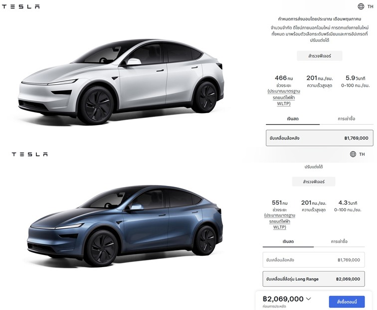 - Tesla Model Y Long Range AWD ราคา 2,069,000 บาท